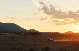 Riding outdoors. Car in the deserts of Africa, Namibia.
